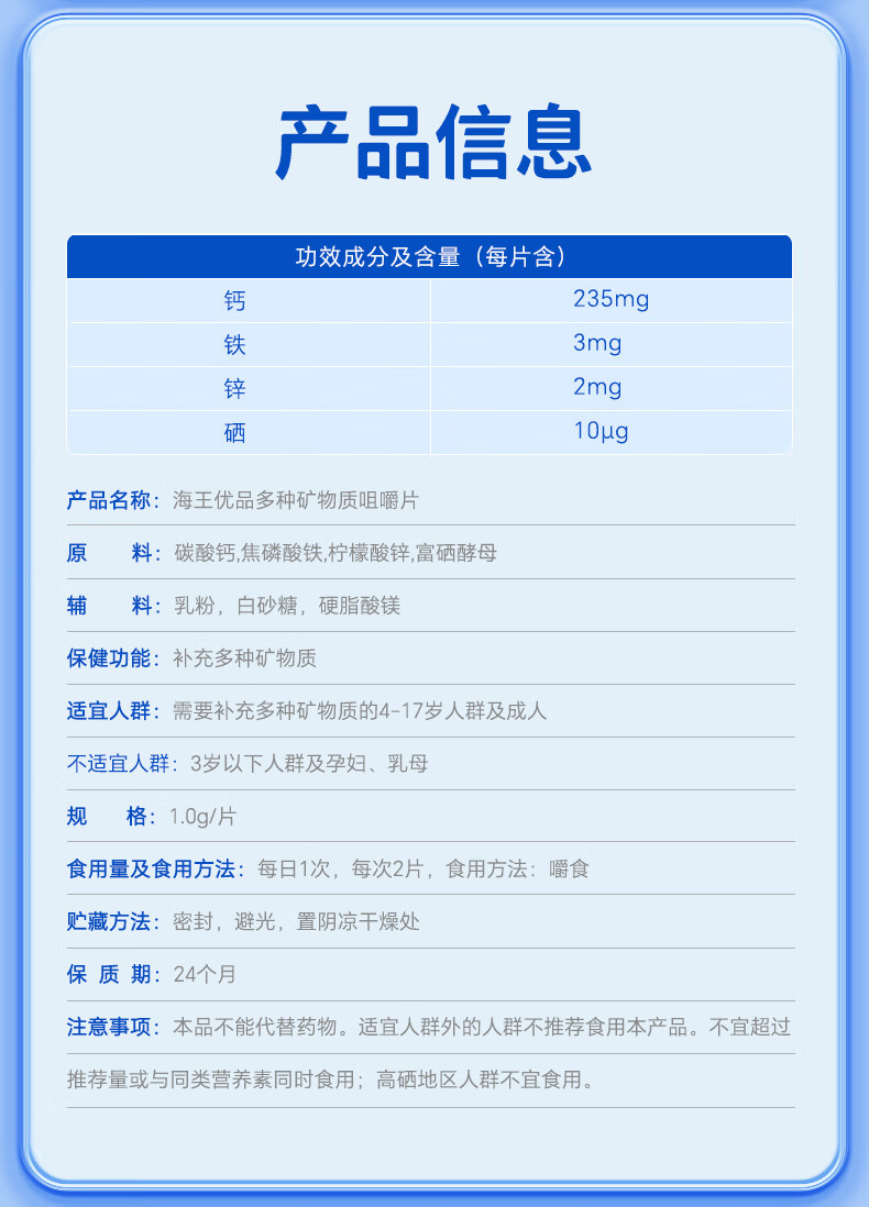 海王优品多种矿物质咀嚼片