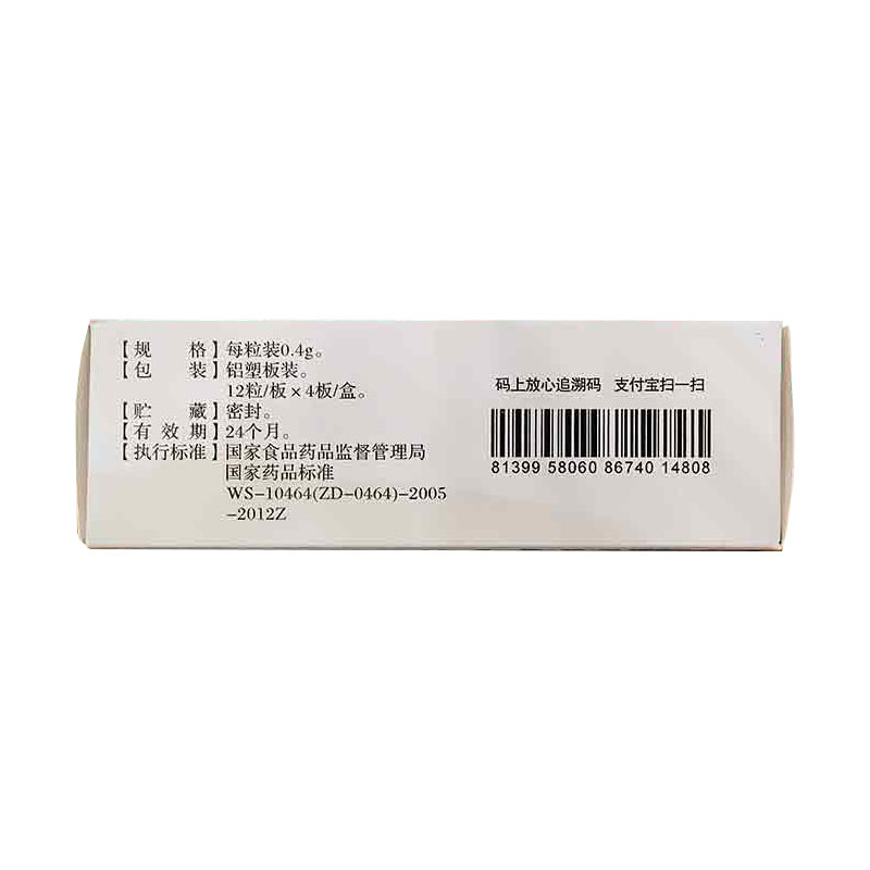 0.3g*12粒/板*4板/盒(相当于饮片3.186g)